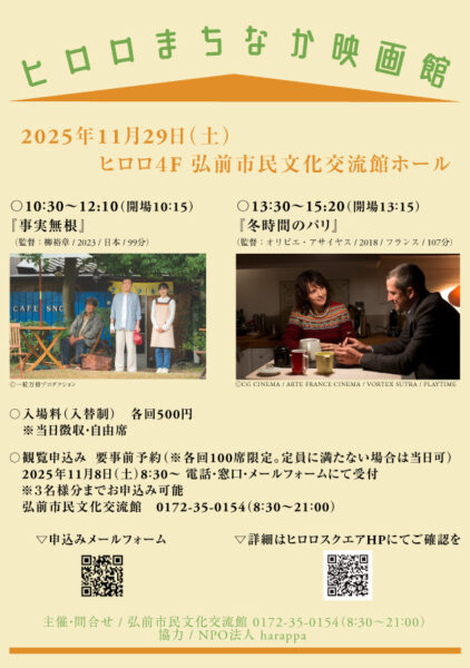 主催・問合せ:弘前市民文化交流館 0172-35-0154(8:30~21:00)