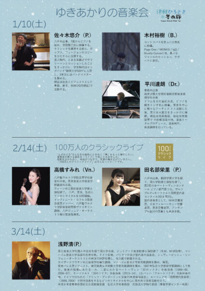市民や観光客の皆様に、ゆきあかりに照らされた文化施設の中で音楽を楽しんでいただき、