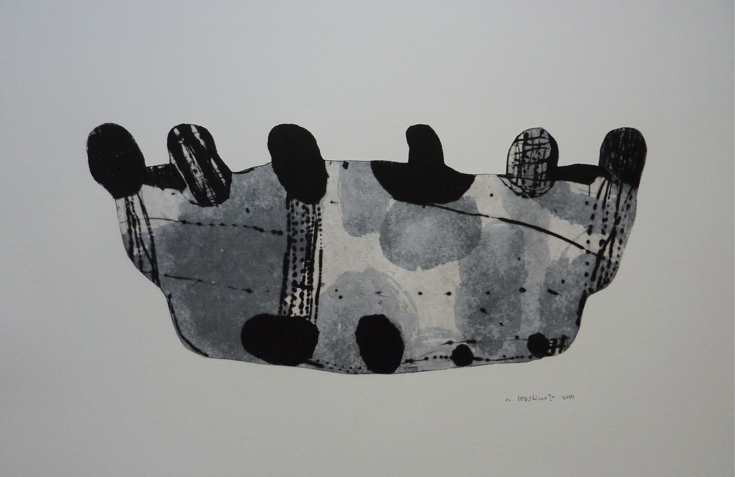 アルミ版を使ったドライポイントによるモノタイプ版画を制作。
